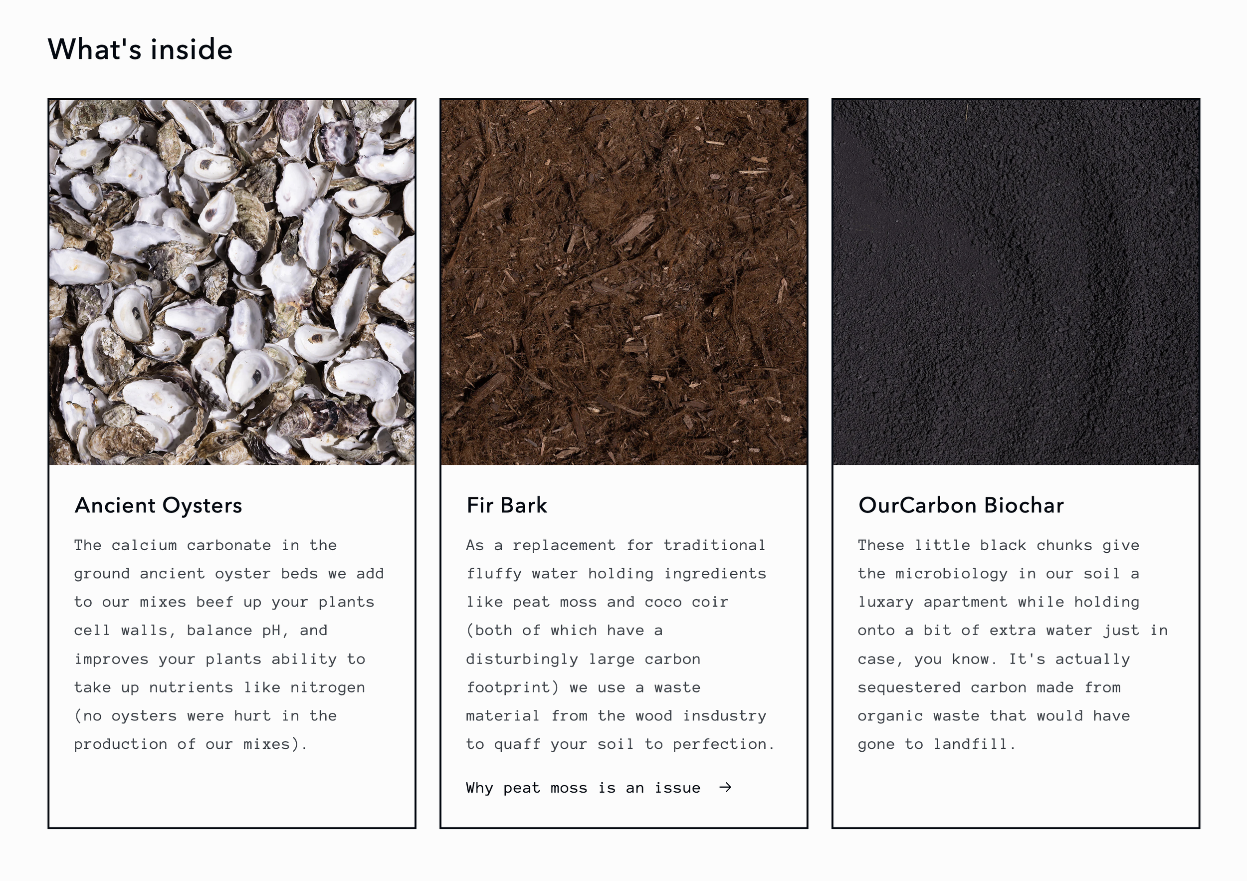 The impact and curation of the ingredients in DEN’s products lead us to spotlight each of them individually on the homepage as well as a dedicated ‘INGREDIENTS’ page. The ingredients page references relevant blog posts that allow visitors take a deeper dive into a materials impact and sourcing.