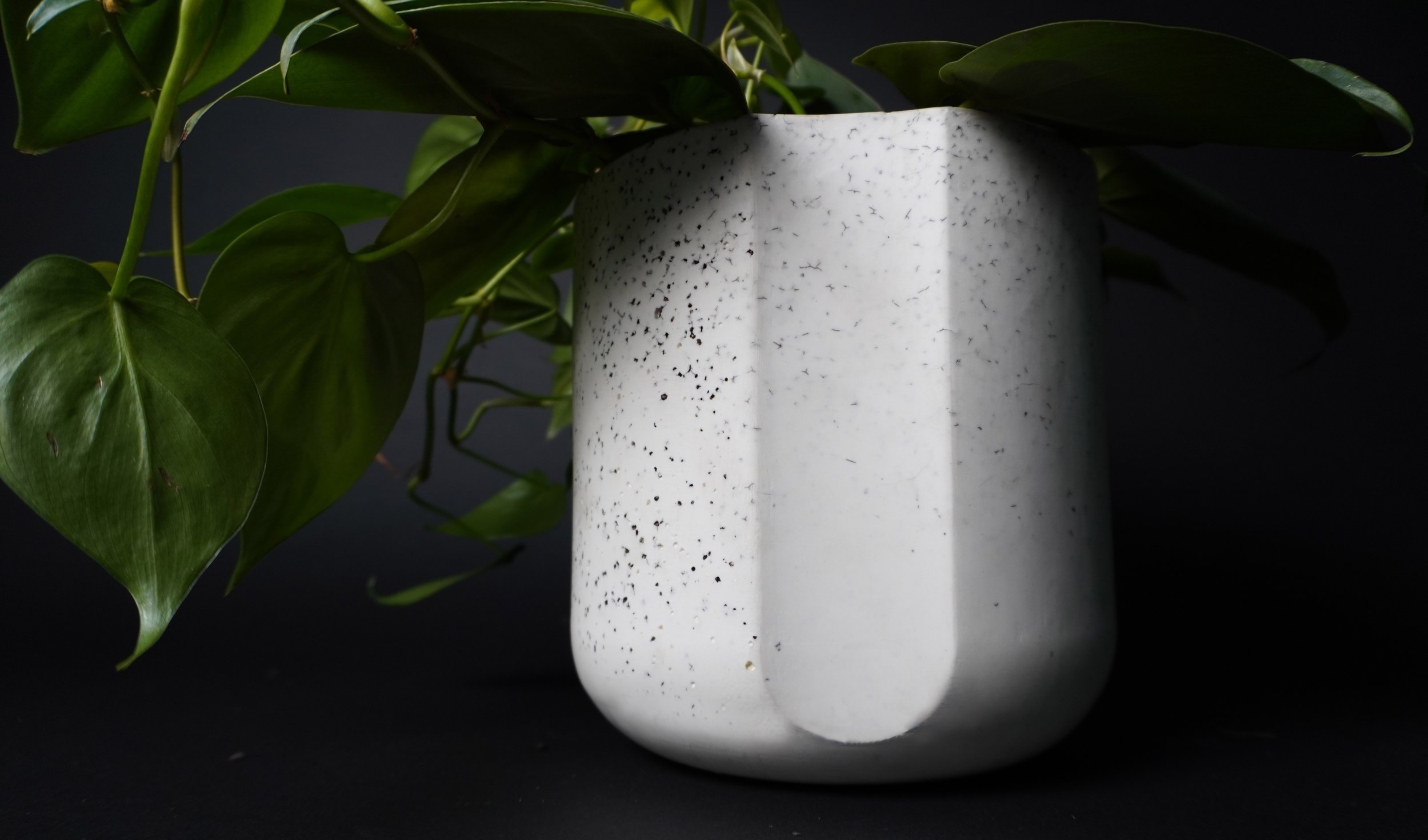 The design of the planter is simple and modern, showing a flat vertical face to frame its carbon locked material. Two indentations on opposing sides of the planter pay homage to handles on ancient vessels and invite you to lift the planter up in both of your hands, to give it your full attention.